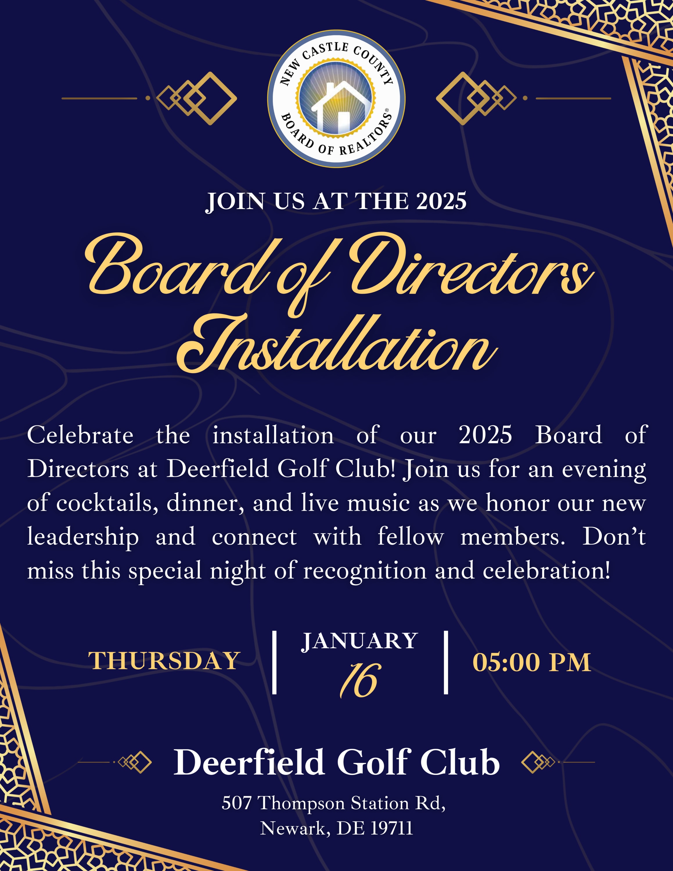 Join us at Deerfield Golf Club for an evening of celebration as we install our 2025 Board of Directors! Kick off the night with cocktails and dinner, followed by an inspiring ceremony to honor the incoming and outgoing leadership. Afterward, enjoy live music and dancing with a performance by Love Seed Mama Jump! Don’t miss this opportunity to connect with colleagues, celebrate our members, and support the future leaders of our organization!